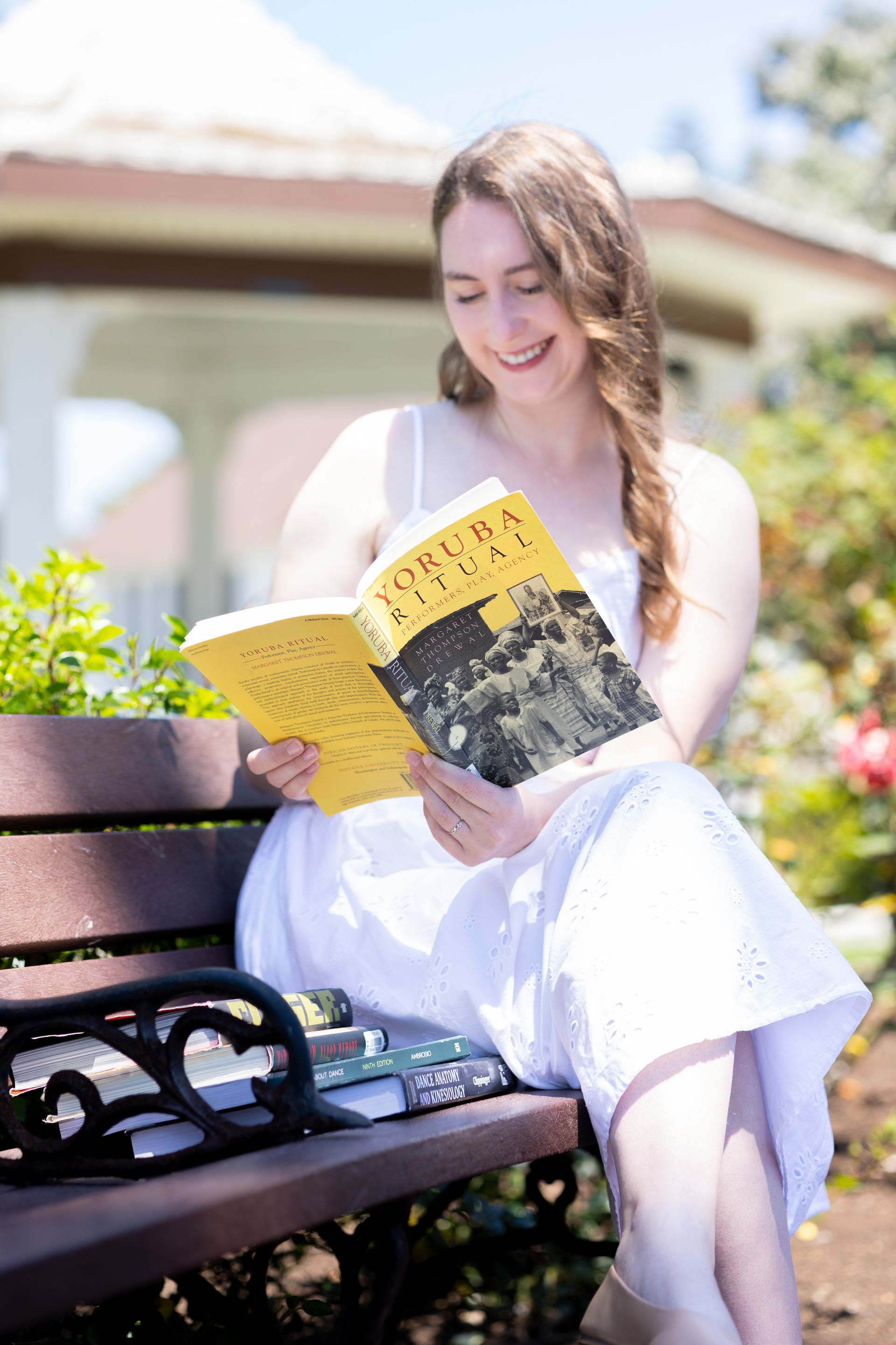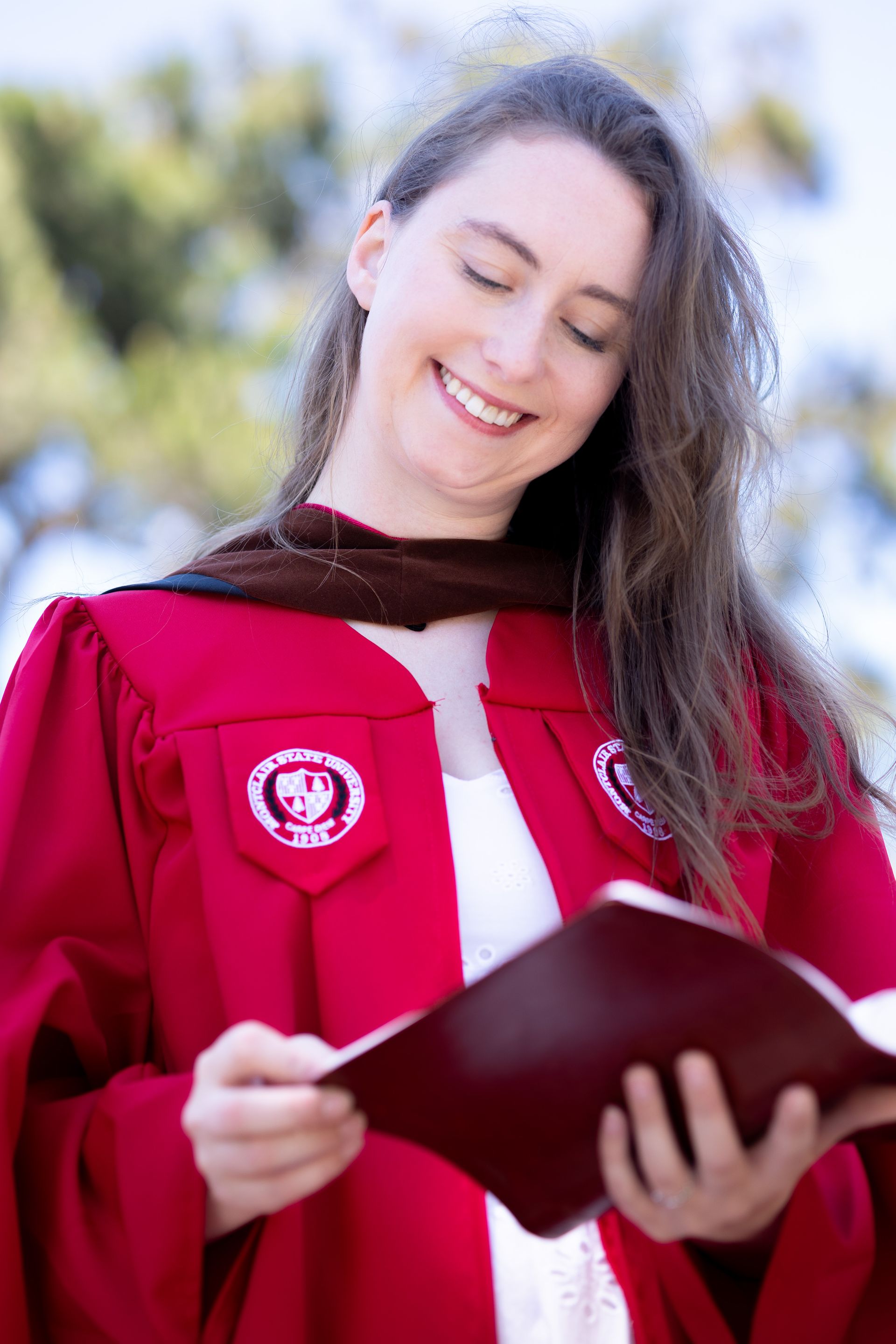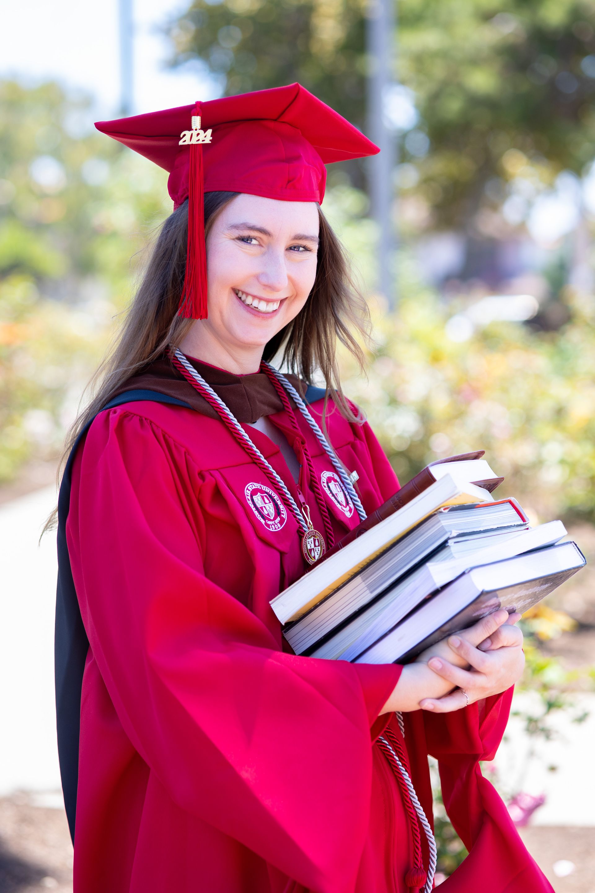 Portrait photos of Sarah Piscopo, a recent master graduate from Montclair University.